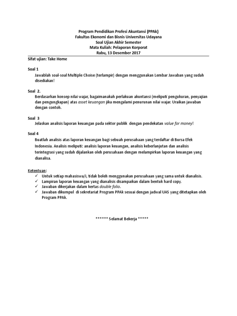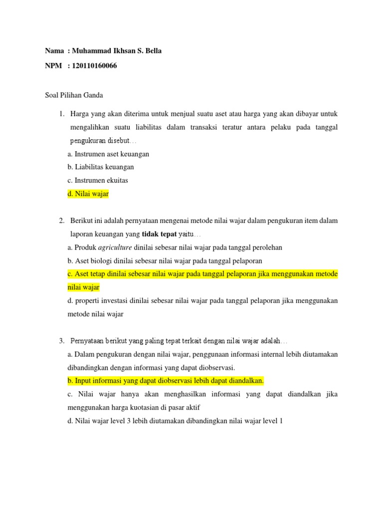 Jawab Pertanyaan Ini Brainly Co Id from id-static.z-dn.net Psak 68 mendefinisikan nilai wajar sebagai harga yang akan diterima untuk menjual suatu aset atau harga yang akan dibayar untuk mengalihkan suatu liabilitas dalam transaksi yang teratur antara pelaku pasar pada tanggal pengukuran. Disebutkan bahwa sistem akuntansi atau pelaporan keuangan yang menggunakan nilai wajar dianggap sebagai penyebab terjadinya krisis keuangan tersebut. Nilai wajar ini digunakan untuk mengukur: Pertanyaan tentang bagaimana menghitung valuasi aset kripto dengan tepat adalah salah satu aspek pasar kripto yang paling kompleks, menantang, dan paling banyak diperdebatkan. Investasi pada bangunan dalam laporan dana pensiun dinilai sebesar: Jawablah 120 pertanyaan filsafat *. Konsiderasi bersih dari satu atau lebih aset dikurangi satu atau lebih liabilitas terkait. Pada penelitian ini fungsi gamma digunakan untuk menyelesaikan kasus beberapa integral tak wajar dengan