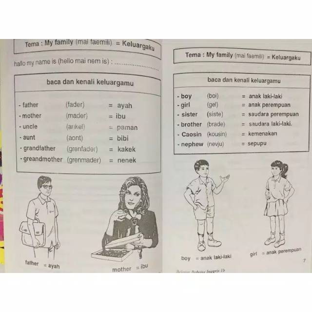 Saudara perempuan, bisa kakak atau adik; Dalam bahasa inggris, kata sifat kepemilikan (my) diletakkan di depan kata benda (mother). When your son grows up, become his brother. Nenek = grandmother · 4. Bapak = father · 3.