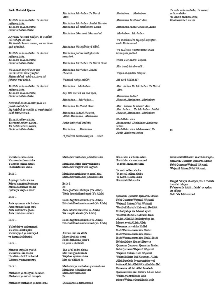 Sholawat qiyam ya nabi salam alaika dengan lirik.